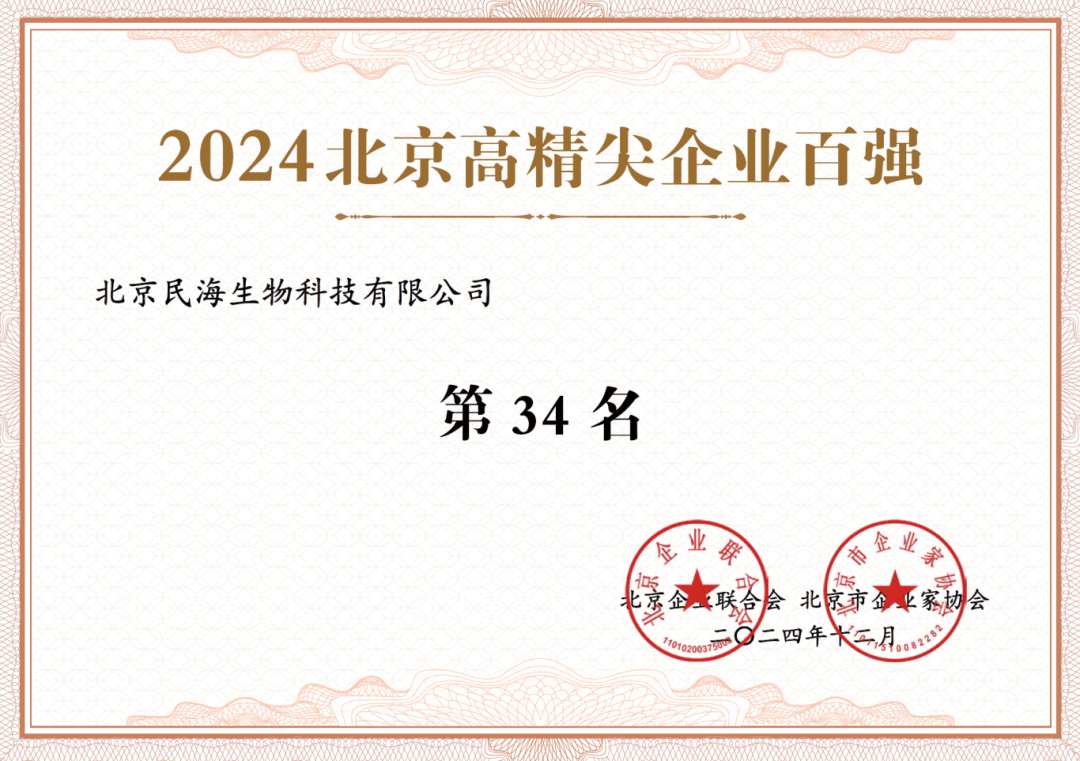 近日,北京企业联合会、北京市企业家协会等共同发布了“2024北京企业百强”系列榜单,以研发创新、企业营收、社会效益等多方面综合实力作为考察标准。j9九游会生物全资子公司民海生物荣登“2024北京高精尖企业百强”,在上榜医药企业中名列前茅,位居上榜疫苗企业之首;此外,民海生物还荣获“2024北京制造业企业百强”“2024京津冀制造业企业百强”等多项榜单。